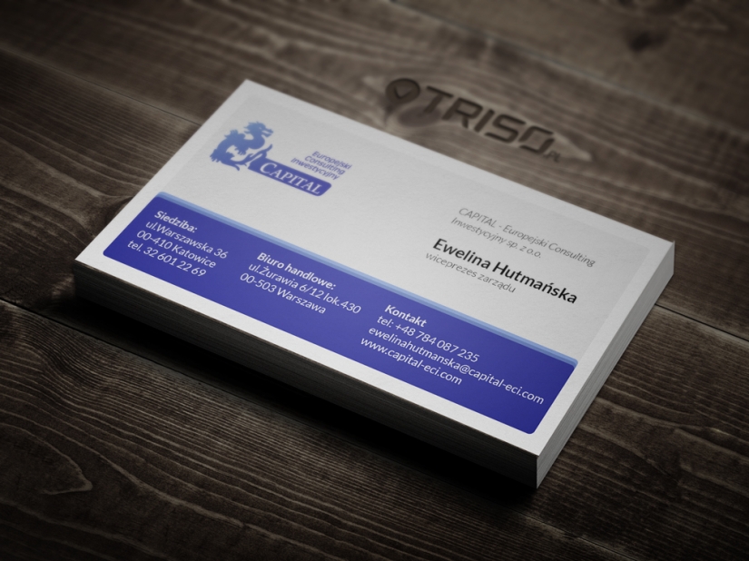 Projekt wizytówek dla Europejskiego Consultingu Inwestycyjnego Capital.